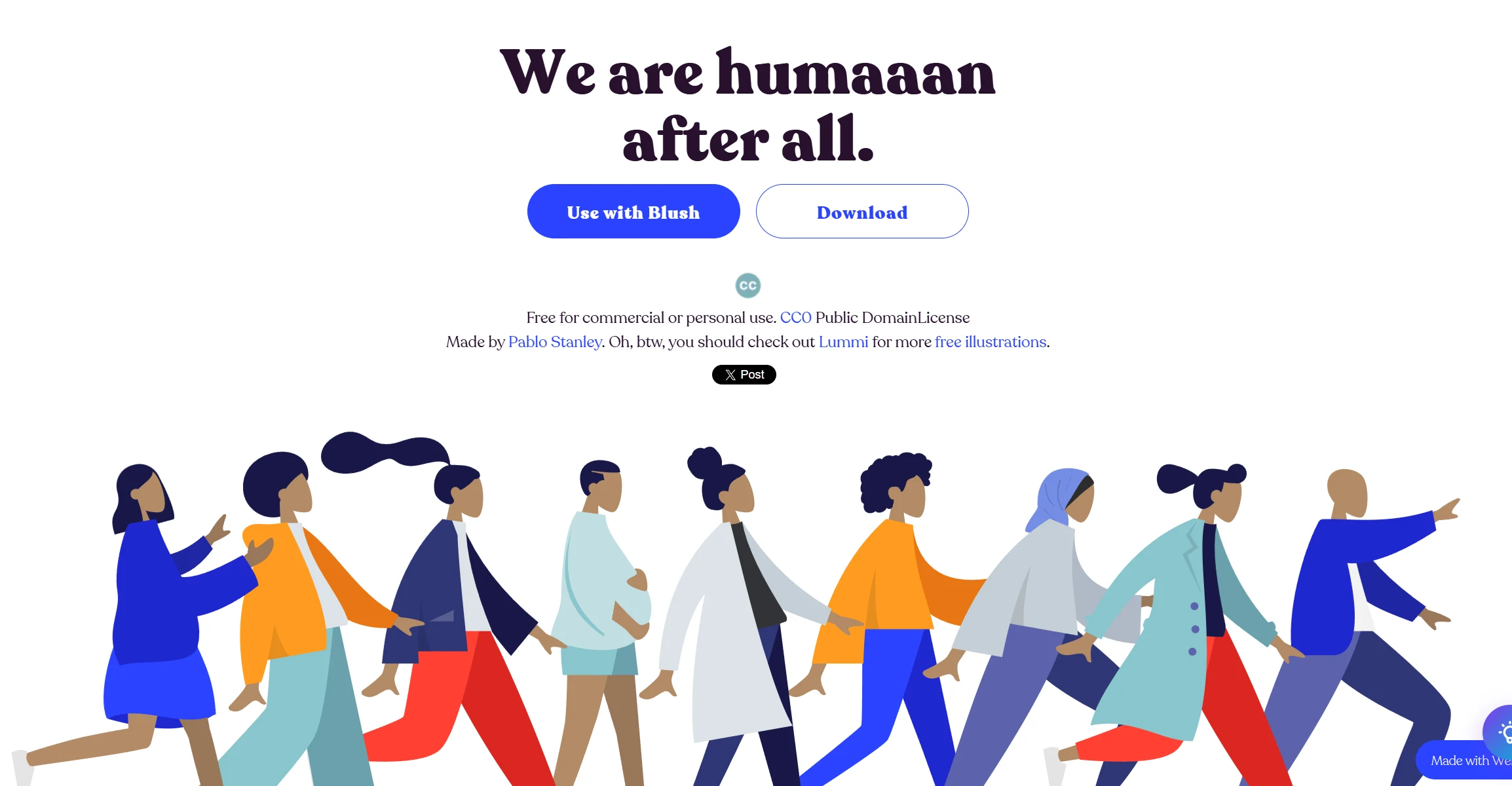 Humaaans 是由设计师 Pablo Stanley 创建的一款免费“人物混搭”(Mix-&-Match)插图库,它提供了各种可自由组合的人物元素,让设计师像拼积木一样快速制作个性化人物插图。无需手绘基础,即可通过拼接头部、身体、服装等组件,快速生成时尚扁平风插画。